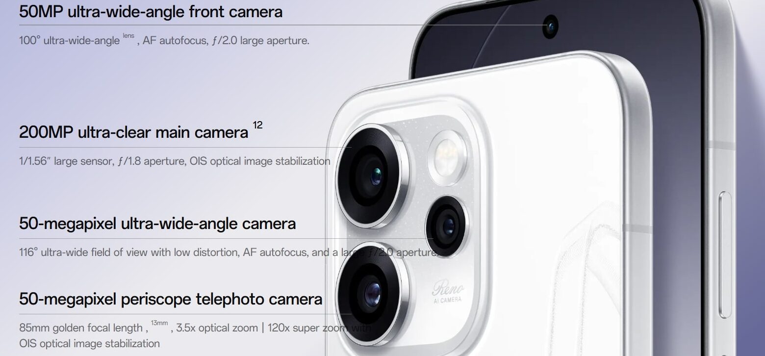 अगर आप photography या videography के शौकीन हैं, तो Oppo Reno 15 Pro आपके लिए एक dream phone साबित हो सकता है। इसमें आपको 200MP ultra-HD primary camera मिलने की उम्मीद है, जो OIS (Optical Image Stabilization) सपोर्ट के साथ आएगा। इसके अलावा फोन में: