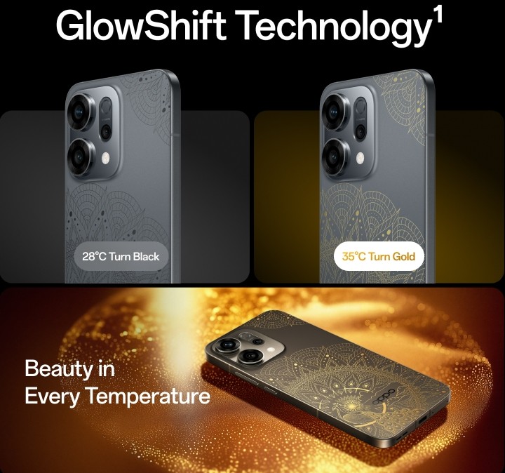 GlowShift: भारत के लिए खास, दुनिया की पहली हीट-सेंसिटिव कलर-चेंजिंग तकनीक – फोन की बैक पैनल तापमान के अनुसार रंग बदलती है। त्योहारों के सीज़न में स्टाइल और यूनिकनेस का बेहतरीन कॉम्बिनेशन।
