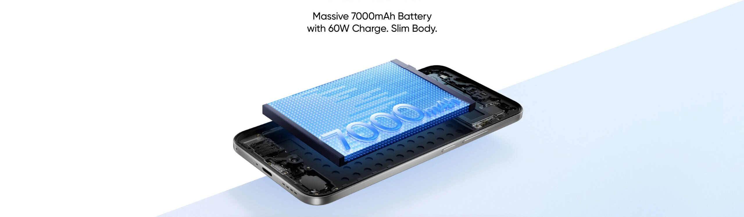 इस फोन की सबसे बड़ी खासियत इसकी 7000mAh बैटरी है। इतनी बड़ी बैटरी आमतौर पर बहुत कम फोन्स में देखने को मिलती है। अगर आप ज्यादा वीडियो देखते हैं, गेम खेलते हैं या दिनभर फोन इस्तेमाल करते हैं, तो ये फोन आसानी से 1–2 दिन तक चल सकता है। इसके साथ 60W फास्ट चार्जिंग भी दी गई है, जिससे बैटरी जल्दी चार्ज हो जाएगी।