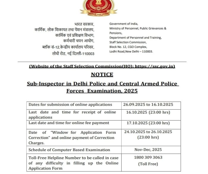 यह लेख केवल जानकारी और guidance के लिए है। SSC CPO 2025 भर्ती से संबंधित सभी तिथियाँ, पात्रता और प्रक्रिया आधिकारिक SSC वेबसाइट पर उपलब्ध जानकारी के अनुसार सत्यापित करें। हमारी वेबसाइट किसी भी त्रुटि या बदलाव के लिए जिम्मेदार नहीं है।